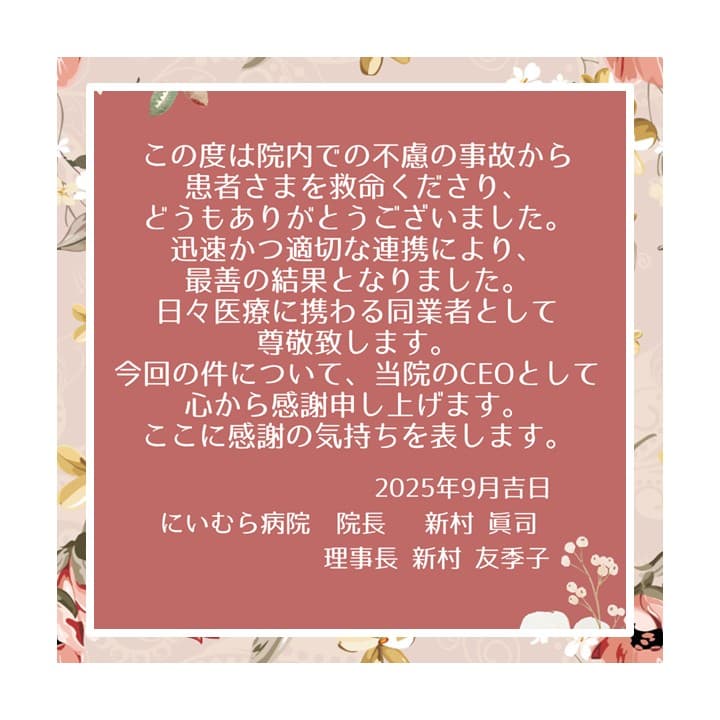 これからもチームにいむらで力を合わせ、ここでよかったと思われる医療を提供してまいります。