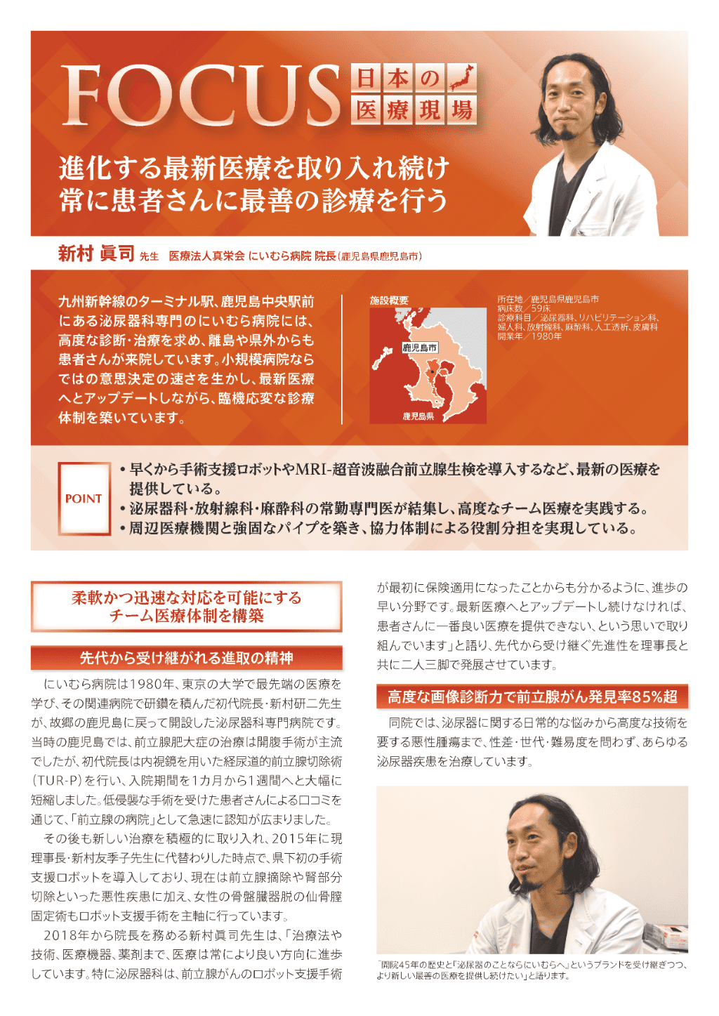 アステラス製薬が発行している「FOCUS 日本の医療現場」に眞司院長のインタビューが掲載されました。