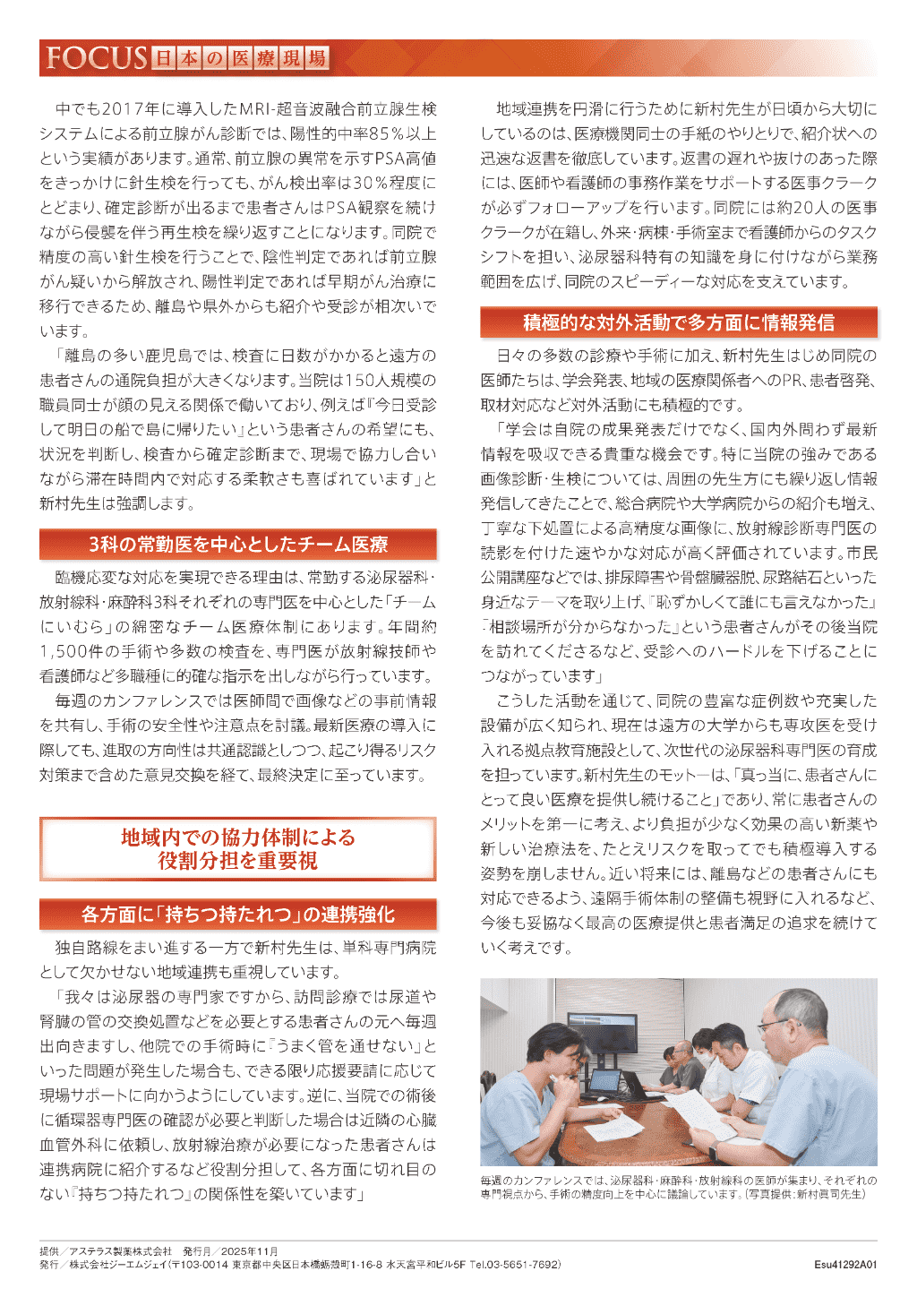 アステラス製薬発行「FOCUS 日本の医療現場」掲載